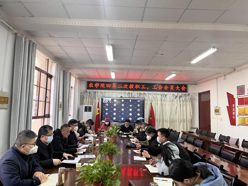 1月11日上午,农学院在学院会议室召开四届二次教职工暨工会会员大会,会议采取线上线下结合的方式进行。学院党政领导和全体教职工、工会会员参加大会,会议由农学院党委副书记、纪委书记张轶辉主持。