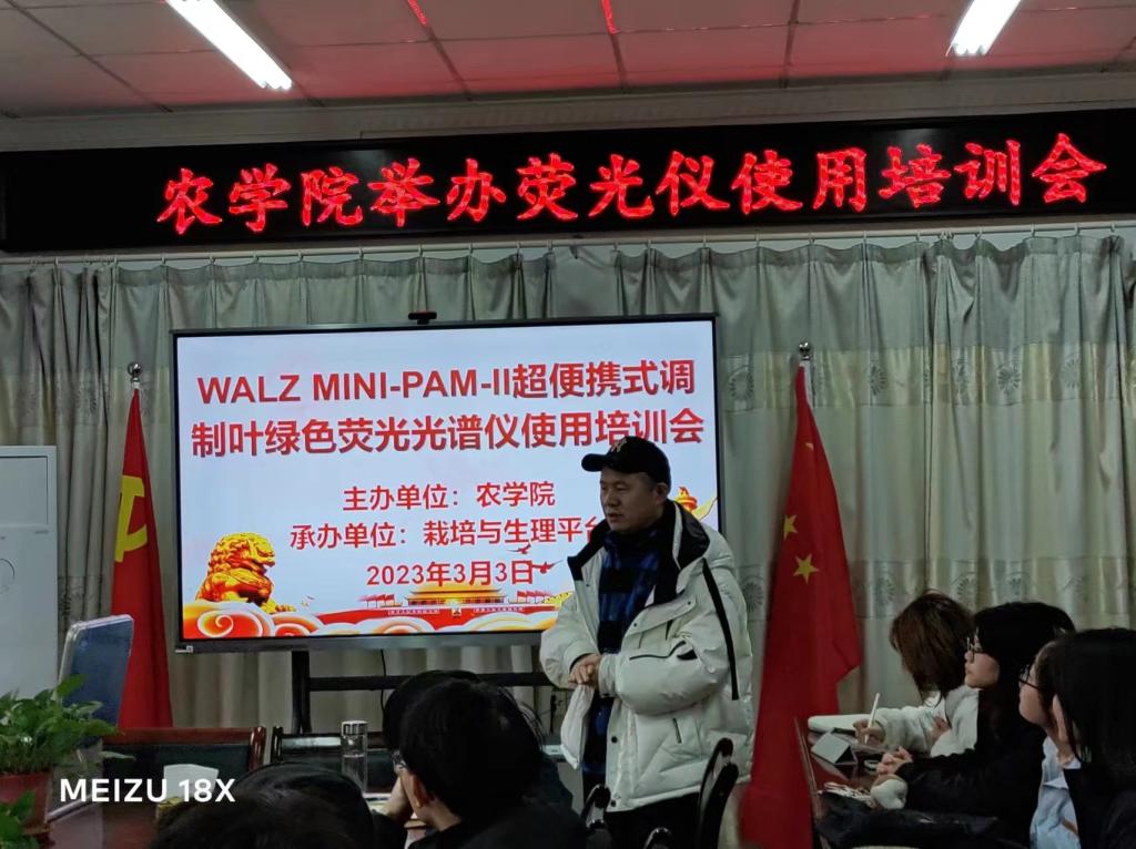 3月3日上午,农学院栽培与生理平台组织超便携式调制叶绿素荧光光谱仪使用培训会,农艺与种业、资源利用与植物保护专业的40余名研究生参加,培训会由平台负责人任兰天教授主持,武德功博士主讲。