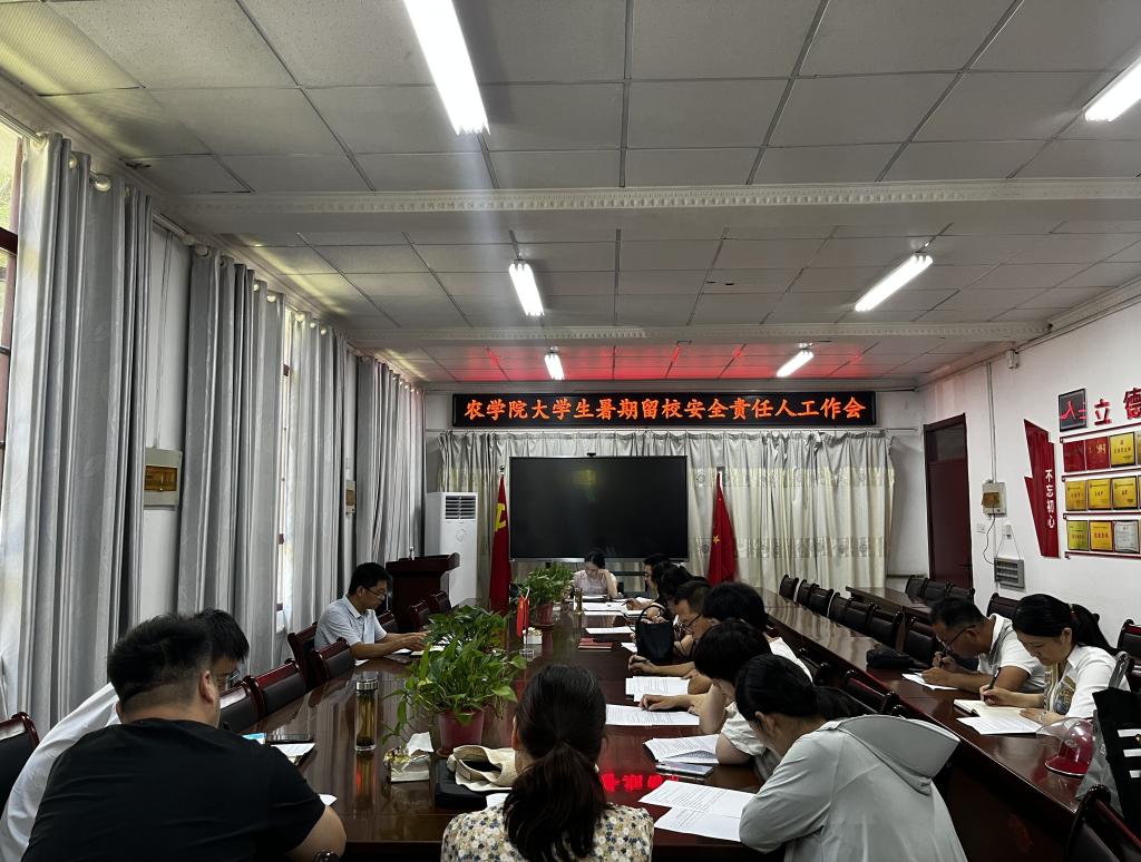7月5日下午,农学院在学院会议室召开大学生暑期留校安全责任人工作会议,部署暑期留校学生安全教育管理工作。学院全体专职辅导员、留校安全责任人参加会议。会议由党委副书记张轶辉主持。