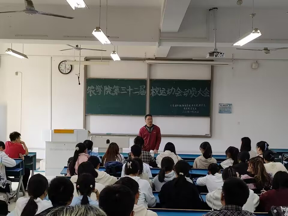 为更好地迎接第三十二届校运动会,充分调动运动员们的热情与激情,确保运动会有序进行,10月24日中午,农学院在新知楼A210教室举办了校运动会动员大会。农学院党委副书记张轶辉,农学院专职辅导员杨孝延、李娜出席本次会议,会议由杨孝延主持。