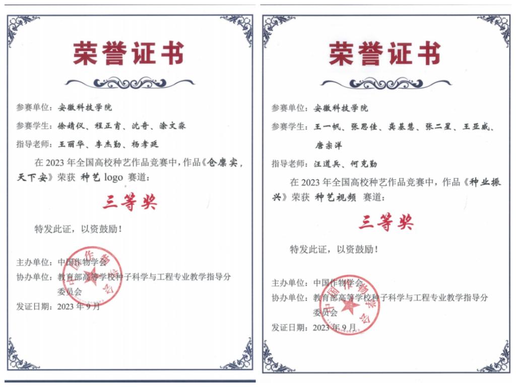 此次参赛期间,安科学子积极参赛,共收到学生们精心制作的81份种艺作品,依据大赛主题要求,学校遴选出76份作品参赛。每个作品紧扣大赛主题,各类农作物种子在安科学子的奇思妙想下,创造出了一幅幅栩栩如生、寓意深长的种艺作品。在师生的辛苦付出和共同努力下,经过评审专家组对参赛作品的内容、创意、质量、思路清晰度和逻辑合理性等方面进行综合评审。最终在3636件国赛参赛队伍中,我校获奖的有10支队伍,55名同学,最终斩获全国三等奖10项。