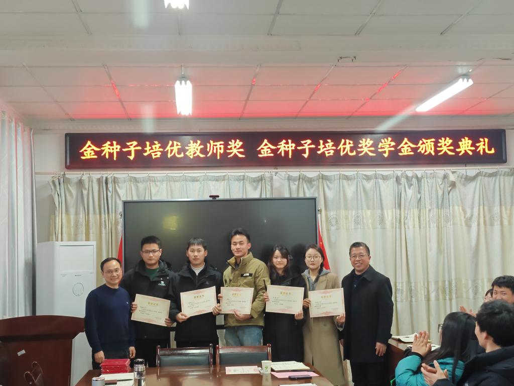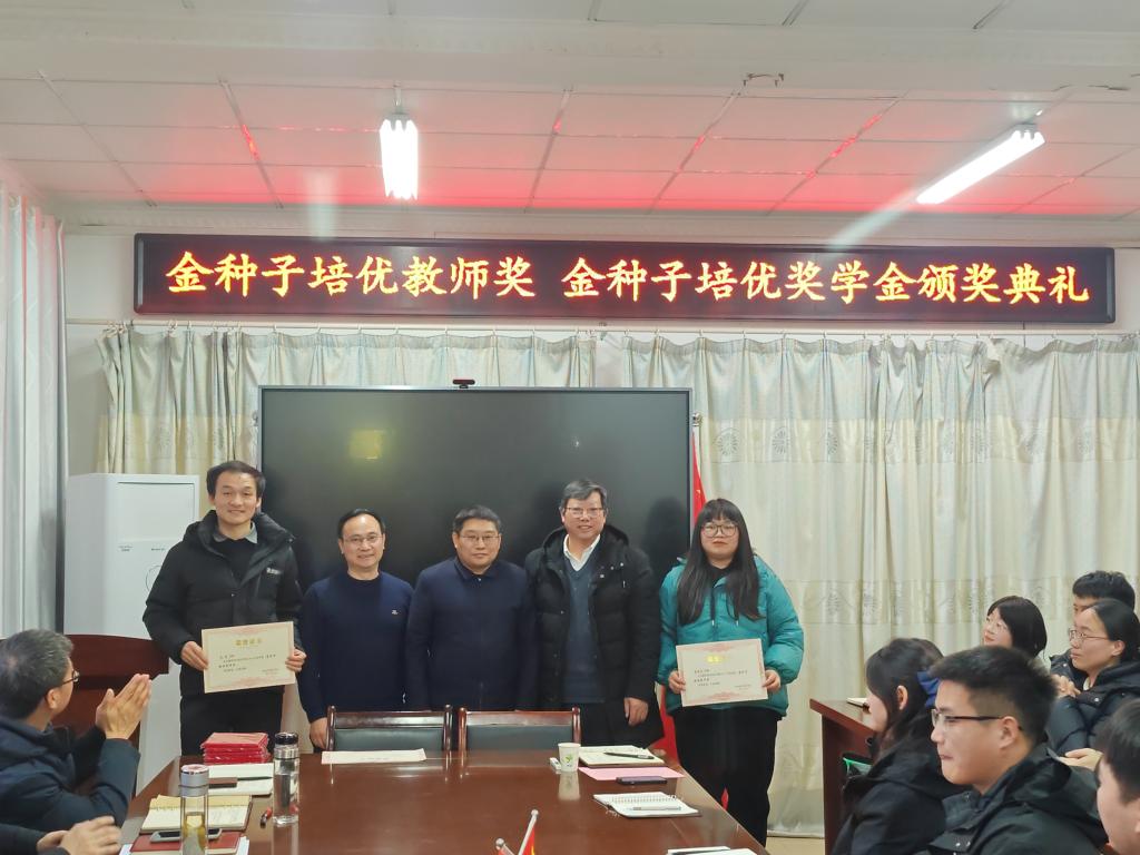 1月11日下午,“金种子培优基金”2023年度“金种子培优奖学金”“金种子培优教师奖”颁奖仪式在农学院会议室隆重举行。学校党委委员、副院长李升和,上海景领投资管理有限公司合伙人、基金发起者黄宪先生,二级教授、基金发起者农学院黄先忠老师,农学院党委书记何世潮,副书记张轶辉,副院长舒英杰和李文阳以及教师代表和学生代表出席颁奖仪式。根据《星空体育·「中国」官方网站农学院“金种子培优基金”申报细则》和申报人申请,经“金种子培优基金”评审委员会评审,李瑞宁、艾昊两位青年教师荣获金种子培优教师奖,孙张论、李婷、杜孟祥、杨德坤和王静婷五位农艺与种业专业研究生荣获金种子培优奖学金。颁奖仪式由农学院党委副书记、院长崔广荣主持。