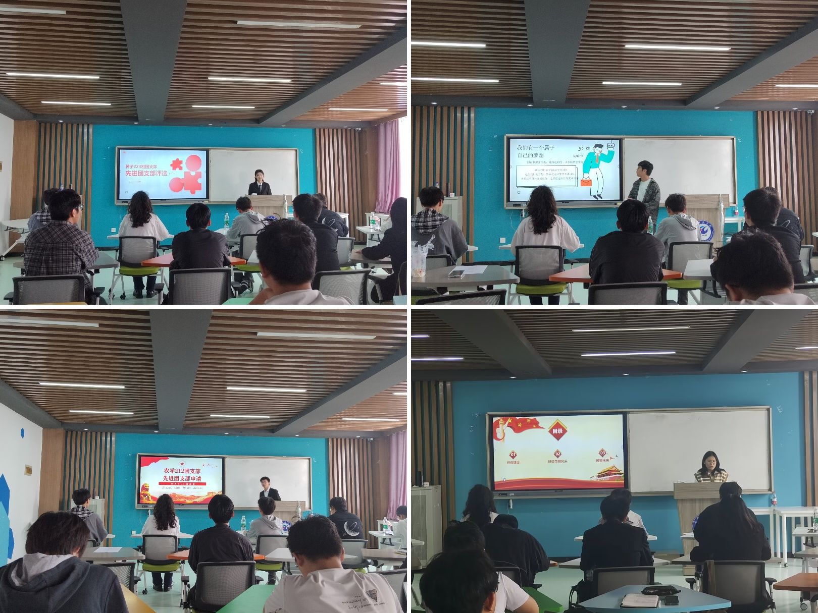 各团支部以PPT展演的形式,围绕团支部基本情况、思想政治建设、学风建设、班级文化建设和团学活动等几个方面,汇报了团支部取得的成绩、存在的不足及未来展望。评委们本着公平公正原则,根据现场汇报情况,结合团支部参评材料进行综合性评分,最终评选出校级和院级“先进团支部”。