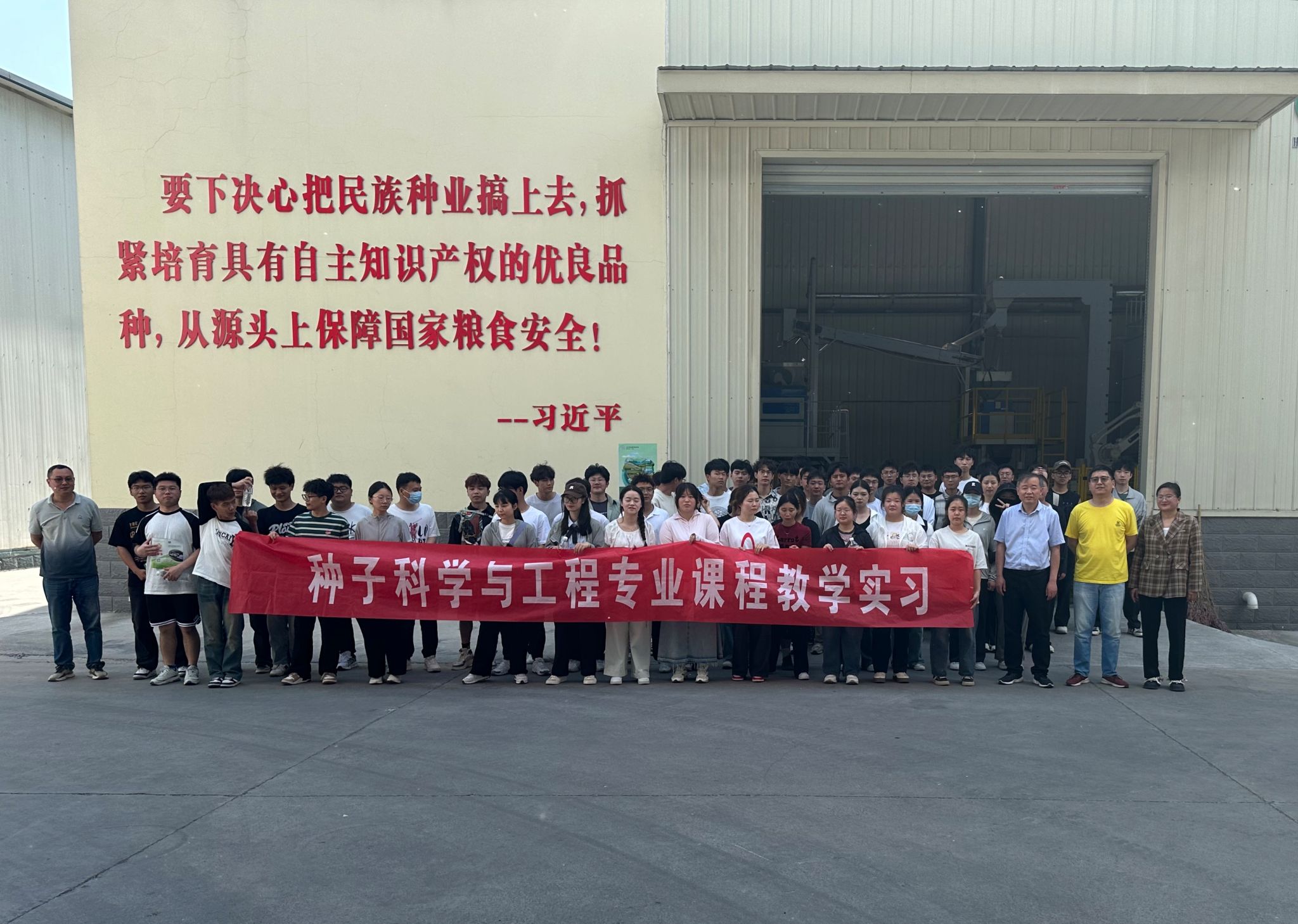 为了巩固理论教学成果,丰富实践教学经验,培育“四能人才”,将农学院“一领五农”的党建品牌落到实处。5月18日上午,《种子经营管理学》、《种子加工贮藏学》的任课教师许峰和朱守晶带领2021级种子科学与工程(对口)专业学生前往宿州市埇桥区的宿州市农业科学院国家农作物品种展示评价基地,进行小麦新品种的现场观摩,观摩会后前往安徽华成种业股份有限公司参观种子加工与贮藏设备的使用。