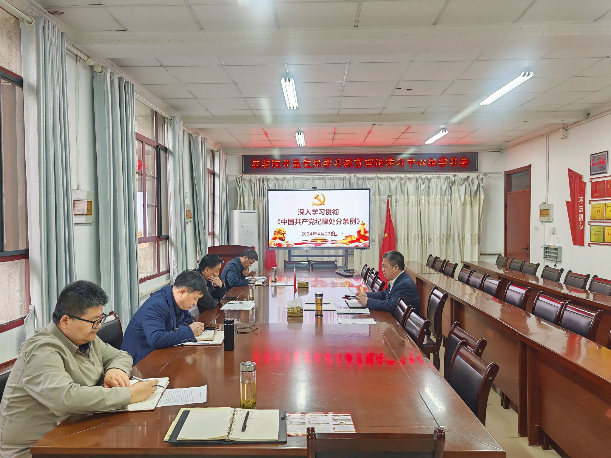 为深入学习贯彻《中国共产党纪律处分条例》,引导学院党员干部进一步深刻学习领会习近平总书记关于党的纪律建设的重要论述,学习领会开展党纪学习教育的重要意义,深刻把握党纪学习教育的目标任务,全面落实党纪学习教育重点工作。党纪学习教育开展以来,农学院各级党组织切实把思想和行动统一到党中央决策部署上来,把开展党纪学习教育作为重要政治任务,把握目标要求,紧密结合实际,推动党纪学习教育不断走深走实,教育引导党员干部学纪、知纪、明纪、守纪。(特约通讯员:汪道兵 摄影:汪道兵 审核:何世潮)