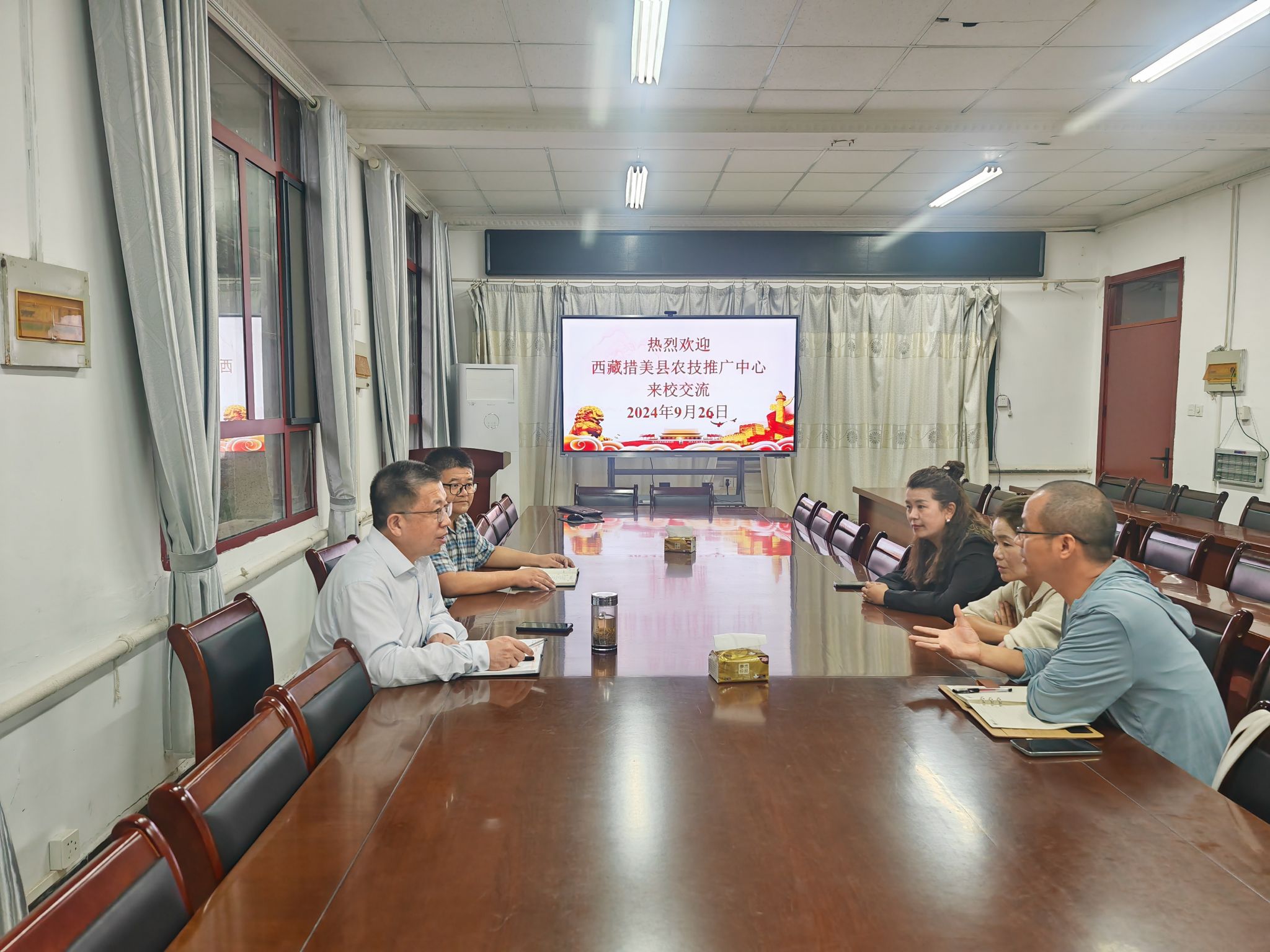 9月26日下午,农学院党委书记何世潮、副院长李文阳等与卓嘎、曲珍进行座谈交流,仔细询问她们的生活和学习情况,表示将发挥学校学科专业和人才资源优势,不断加强校地之间合作,切实解决当地农牧业发展中存在的问题。卓嘎和曲珍分别介绍了自己在措美县的工作和来安科学习的收获与体会,对本次学习时间和内容的安排表示了由衷感谢,并向何世潮和何华奇两位老师敬献哈达以表谢意。