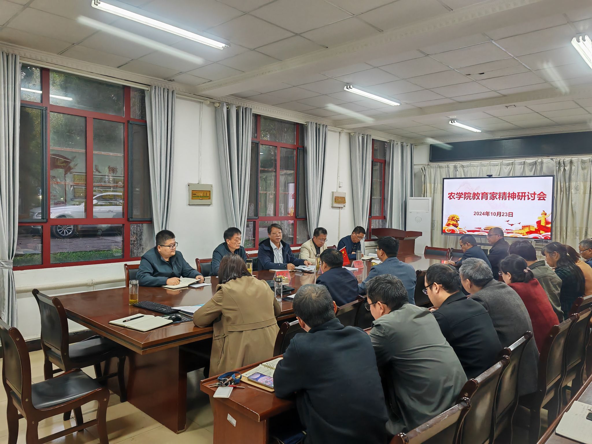 10月23日下午,农学院在学院会议室召开弘扬教育家精神专题研讨会。校党委副书记、院长李升和莅临指导。农学院党政领导以及全体教职工参加会议,会议由学院党委书记何世潮主持。