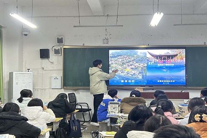 回到母校后,团队成员先去看望了高中时期的班主任和各科任课老师,向老师汇报了在校的学习成果,并且为开展本次活动的联系老师带去了一些精美的小礼品。来到班级里,实践成员先播放了学校制作的宣传片,宣传片结束播放之后,激发了不少同学的兴趣。紧接着团队成员吴发南对PPT进行讲解,为同学们介绍了安科的校区、学校悠久的历史以及我校的招生政策等。在自由提问环节中,团队中的三位成员分别介绍了自己专业所学习的方向、特色课程还有未来的就业方向。面对学弟学妹的一些提问,他们也作出了详细的回答,包括他们对大学生活的憧憬、住宿、食堂等方面的问题。