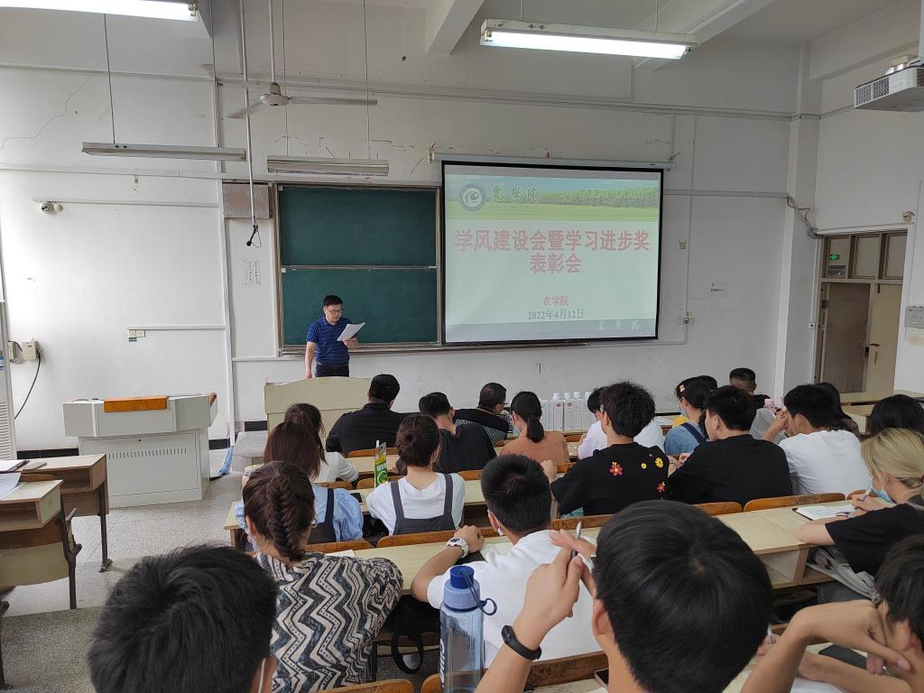 学习是学生的本分,学风是学生成长成才的基础。为了进一步加强学风建设,营造良好的学习氛围,4月12日,农学院在求A203召开了学习进步奖表彰暨学风建设推进会。农学院党委副书记、纪委书记张轶辉,副院长舒英杰,全体专职辅导员、各班班长、团支书及学委参加会议。会议由专职辅导员杨孝延主持。