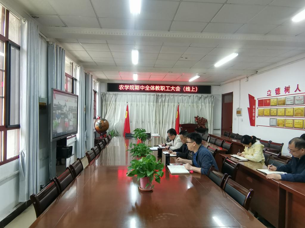 为做好学院常态化疫情防控工作,确保师生身体健康和生命安全,保障学院各项工作顺利推进,4月22日上午,农学院以腾讯会议方式召开期中全体教职工大会,部署学院近期重点工作。会议由党委副书记、院长崔广荣主持。