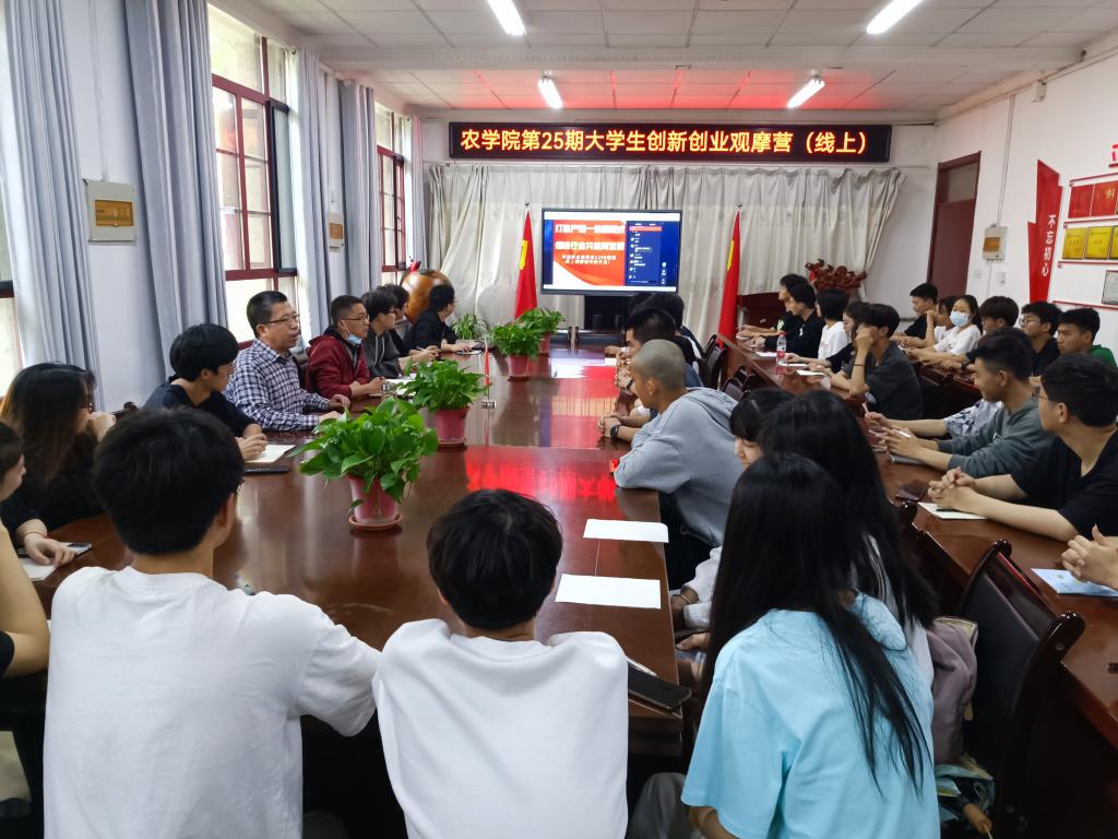 观摩会上,何世潮向与会人员介绍了农学院创新创业观摩营活动组织理念和发展历程,希望全体学员利用创新创业观摩机会,努力提高专业素养,增强创新创业本领。同时何世潮与湖南兴隆种业有限公司总经理刘俊进行了深入交流,开展了访企拓岗专项行动合作洽谈,在实习实践基地建设、毕业生就业等领域达成了一致意见。