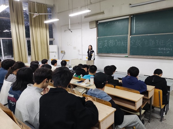 会上,各团支部书记向大家介绍了团支部成立以来班子建设、制度落实、组织生活、教育管理、团费缴纳、理论学习、志愿服务、主题团课等开展情况。随后团支部成员参照“对标定级”标准进行逐一点评,指出团支部存在的问题和今后努力方向。最后团支部书记带领团员们学习团内相关制度文件,并要求广大团员要规范使用团徽、团旗和团歌。