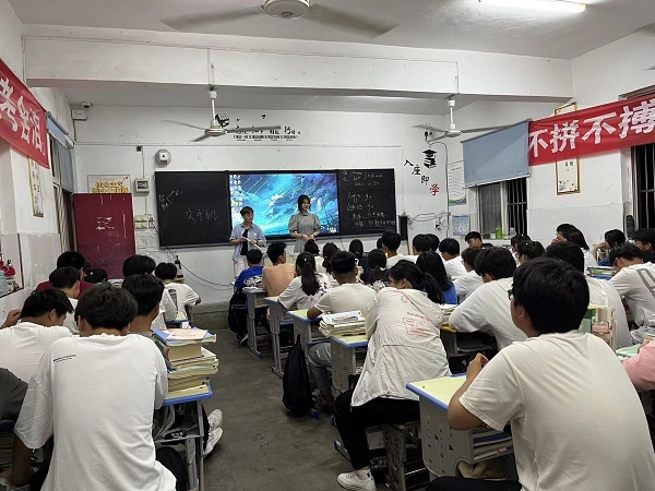 到达母校后,卢雨向高中老师汇报了大学一年学习生活情况,分享自己的学习心得,并向老师的培养表达感激。随后,在老师的带领下到高三部分班级向学弟学妹们介绍星空体育·「中国」官方网站的办学历程及近几年取得的重大发展。在交流过程中,学弟学妹们表现出极大的兴趣,提问咨询、各抒己见。最后,卢雨带领学弟学妹们观看了星空体育·「中国」官方网站2022年的招生宣传片,向同学们分享了自己的学习经验和心得,鼓励学弟学妹们努力拼搏,争取考上理想大学。