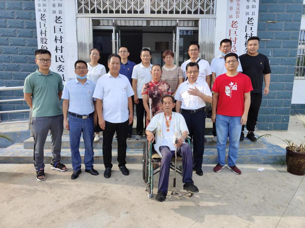 在枣巷镇老巨村党群服务中心,在老巨村党总支书记巨青松的主持下,何世潮一行拜见了巨万起老人,并与老人促膝谈心,详细询问其身体和生活情况。巨万起老人于1946年入伍,曾服役于当时的汽车连部队,负责为前线运送枪支弹药,参加过淮海战役、渡江战役。于1956年退伍,回村后当起木匠,并将自己的革命精神延续到现在,生活中依旧节俭朴素,为后辈树立了榜样。在交谈中,当回忆起当年场景时,老人仍然激情满怀,热泪盈眶,他说当时自己虽然是后勤补给工作,但同样为革命做出了贡献,老人动情地说他现在很知足,他已经比当年的战友多活了70多年,而且现在国家非常关心他们这些老战士,他们生活得很幸福。