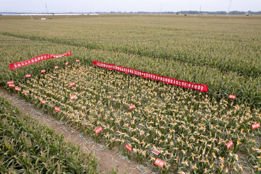 在全国上下喜迎党的二十大胜利召开之际,为推动玉米新品种新技术的应用,共同促进安徽省玉米产业的发展,9月22日,我校主办的安徽省玉米新品种新技术现场观摩会暨2022年安徽省农业科技成果转化应用专项项目“抗逆稳产优质适机收玉米新品种新技术转化项目”技术培训会在固镇县召开。我校党委委员、副院长李升和,蚌埠市政协副主席孟祥光,安徽省农业科学院科研处处长李成,固镇县政协副主席刘览,蚌埠市农业技术推广中心主任孙善军、副主任黄雨,固镇县农业农村局副局长马开响,农学院副院长李文阳,玉米科技创新团队负责人余海兵及团队成员,相关企业、农技人员及种植大户代表等100多人参加。