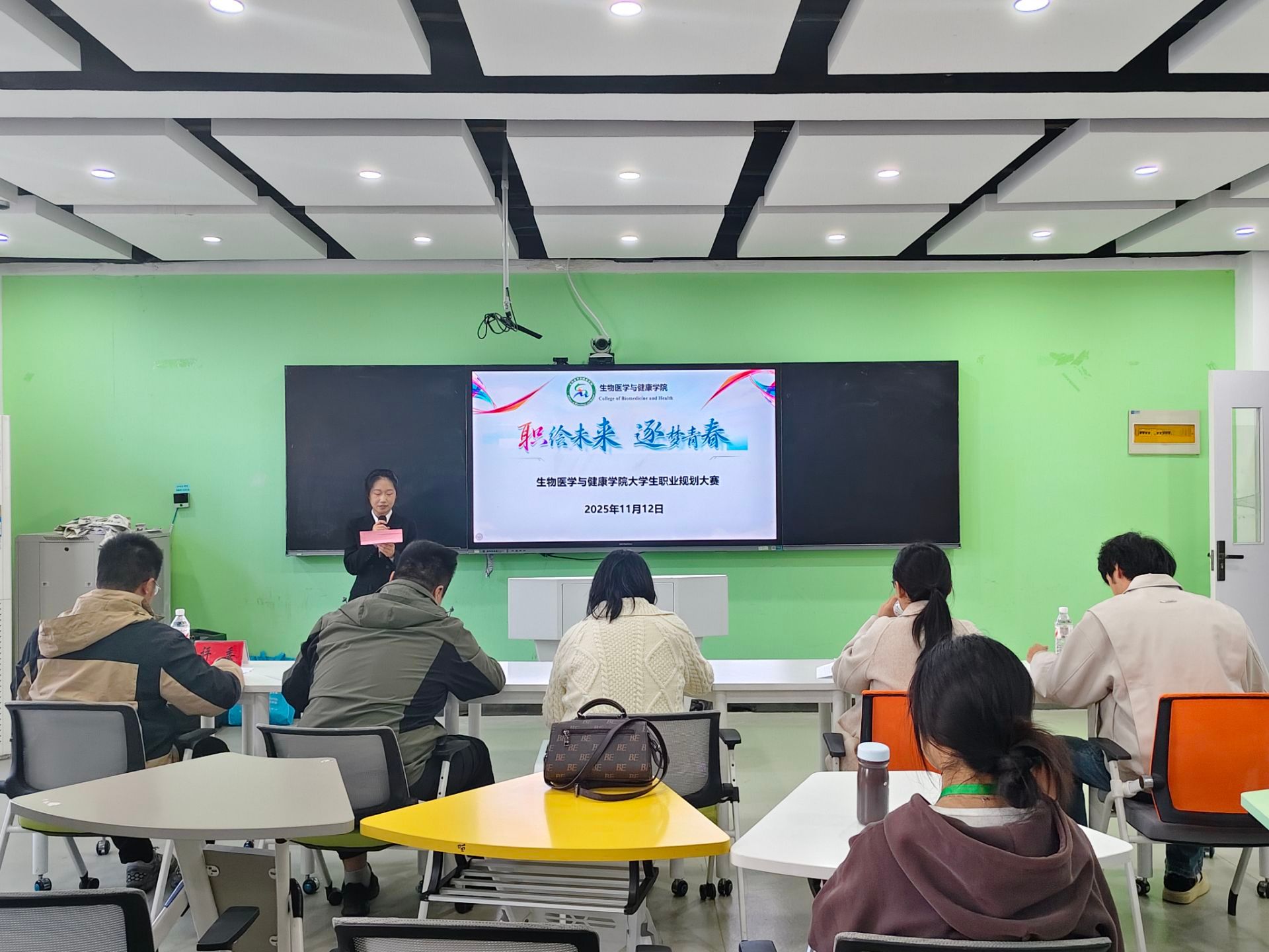 11月12日下午,生物医学与健康学院在求知楼B305智慧教室举办大学生职业规划大赛院级选拔赛。