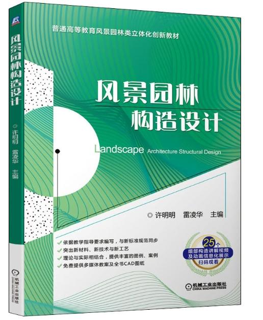 本书采用了易难衔接,过程推进的结构设置,共包括三大内容:风景园林识图、风景园林细部构造、风景园林设计与构造实例。本书分为9章,包括风景园林构造设计概述、地面铺装构造、台阶与坡道构造、风景园林建筑构造、景墙构造、水景构造、其他构造、风景园林识图、风景园林设计与构造实例。本书以适用性和实用性为编写准则,以学生的需求及兴趣为主导,编排内容丰富,采用先进的虚拟仿真技术,图文并茂,图片(主要为二维节点图、三维节点透视图、效果意向图等)和文字匹配度高,资源配套,大量实际典型案例。本书要点内容主要采用图表式表达,图与文字在表格内统一阐述,逻辑清晰,一目了然,避免大规模文字出现,让读者轻松快捷地读懂要点内容。