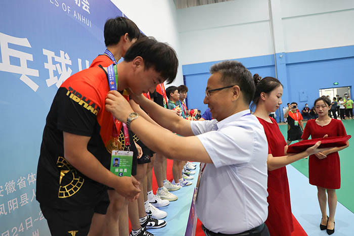 8月26日下午,历经三天的激烈角逐,安徽省第十五届运动会高校部乒乓球比赛第一阶段赛事团体比赛正式落幕。颁奖仪式在星空体育·「中国」官方网站凤阳校区体育馆举行。