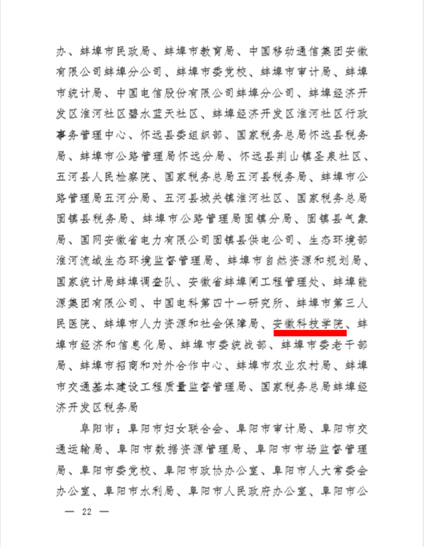 自取得安徽省教育系统首届文明单位、第十七届蚌埠市文明单位之后,我校荣获“第十二届安徽省文明单位”称号,使我校精神文明创建工作又跃上了一个新的台阶。这是学校党委、行政高度重视,更是全校各单位(部门)相互配合,师生员工戮力同心,辛勤奉献的结果;也是省级主管部门、地方党委政府及社会各界对我校积极开展文明创建与地方联动的高度认可。
