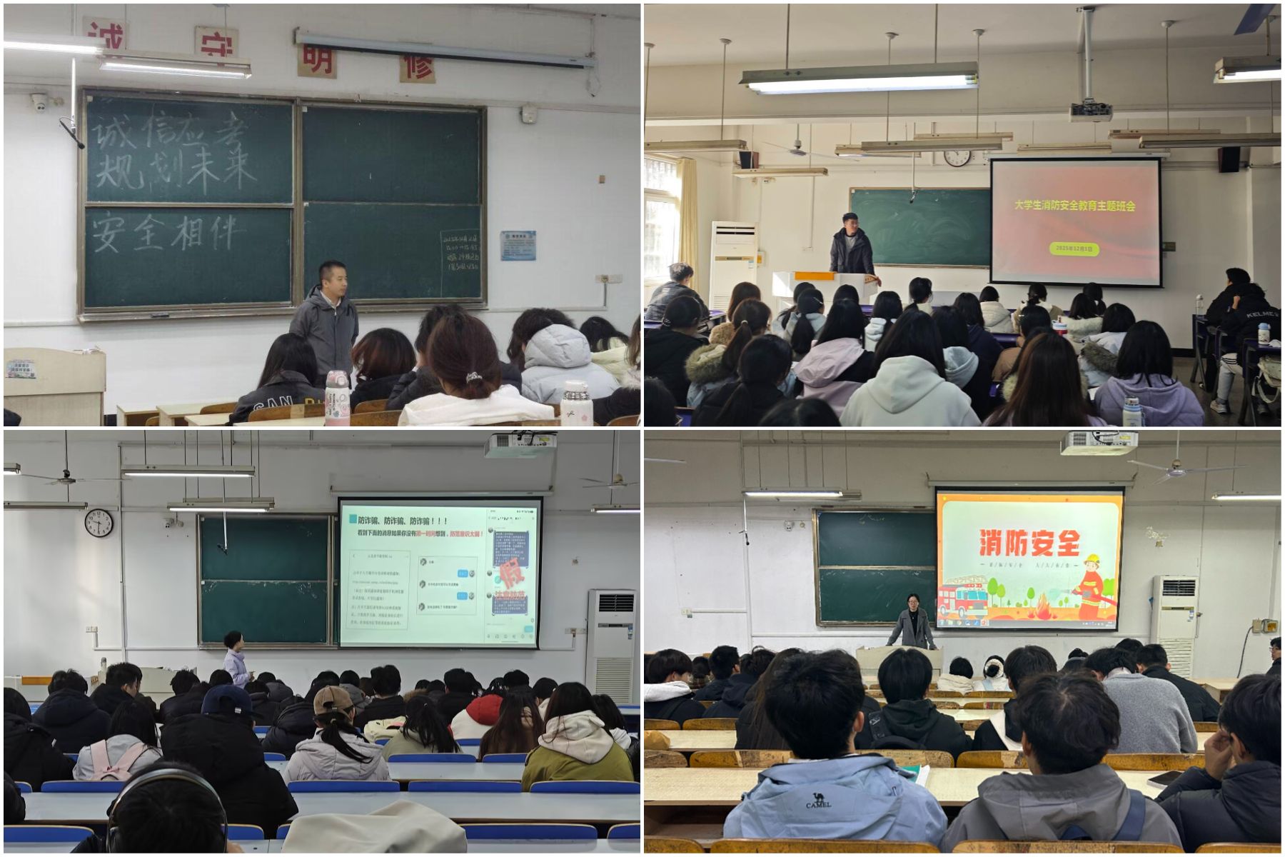围绕安全教育,辅导员通过案例分析、情景模拟、视频警示、互动问答等形式,深入剖析了加强安全教育、提升防范意识的紧迫性和必要性。特别提醒同学们警惕电信诈骗、注意日常出行安全、杜绝使用大功率电器,帮助同学们增强安全意识,提升自我保护能力,引导学生共同维护校园的安全稳定环境。同时提醒学生防寒保暖,预防流感,警惕电信诈骗,不轻信陌生链接或二维码,提升反诈意识。