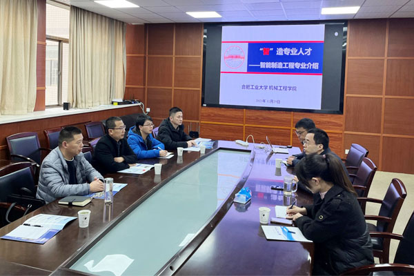 11月29日上午,李同杰一行前往合肥工业大学机械工程学院调研,副院长祖磊介绍了学院专业建设情况,智能制造工程系主任刘征宇详细介绍了合肥工业大学智能制造工程专业的课程设置、实验室建设、师资队伍建设等,并陪同参观了合肥工业大学相关实验室。