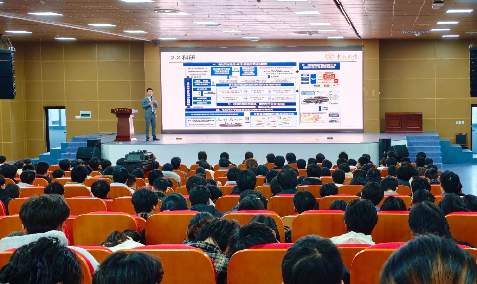 11月27日下午,智能制造学院在滁州校区图书馆二楼报告厅举办优秀校友成长事迹报告会。学院特邀杰出校友—东南大学机械工程学院助理研究员、江苏省智能电动运载装备工程研究中心总经理、东南大学汽车行业校友会执行秘书长李兵兵博士担任主讲嘉宾。学院党委副书记张程主持报告会,部分学生骨干、入党积极分子及300余名2025级新生现场聆听,共享成长智慧。