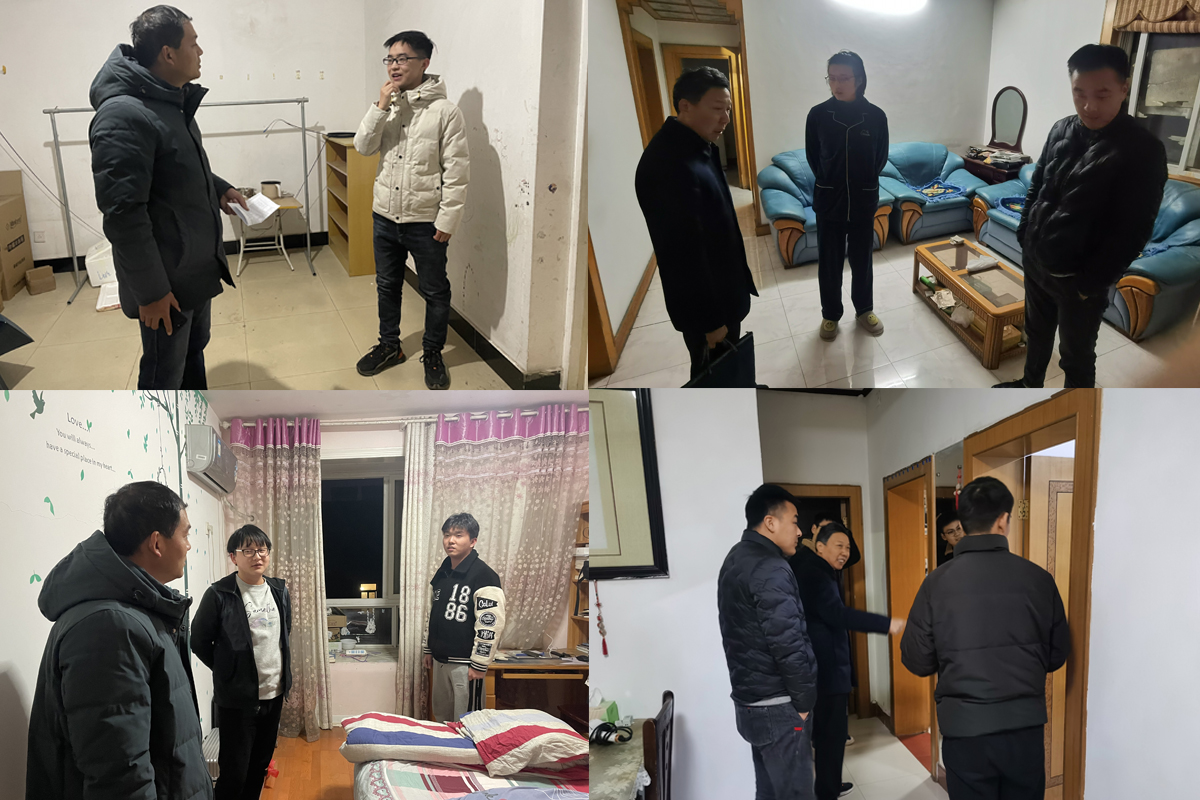 为保障外宿考研学生住宿和生活安全,确保最后一个月考研备战顺利高效,12月3日晚,机械工程学院党委副书记、纪委书记张程,副处级辅导员开金苗带领辅导员张立亮、孟凡生、邱杰走访了外宿考研学生。