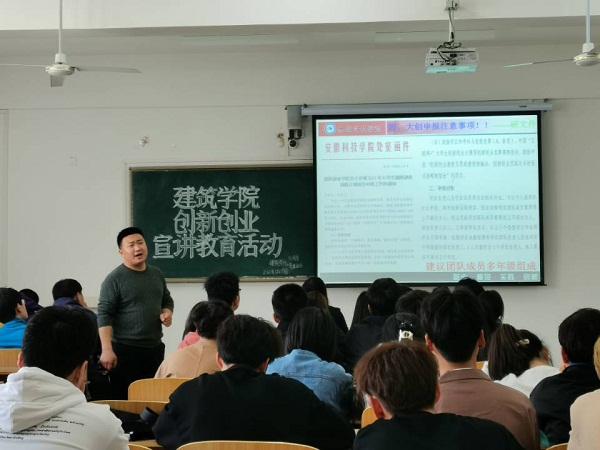 为进一步落实大学生创新创业训练计划,培养毕业生创新创业能力,3月29日中午,建筑学院在致知楼C306成功开展毕业生创新创业宣讲教育活动。本次教育活动由学院副院长张伟主讲,专业课教师刘昕烁和学院全体班长、团支书参加。活动由建筑学院团委书记沈德艳主持。