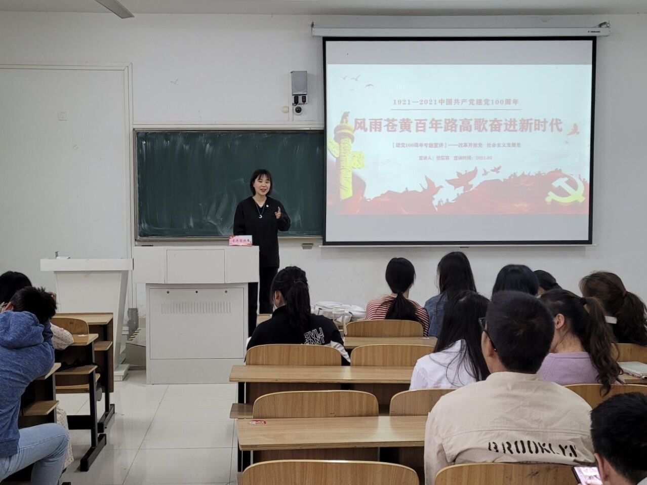 5月26日,建筑学院在致知楼C208教室举行“风雨苍黄百年路,高歌奋进新时代”主题宣讲,此次宣讲会由校青年宣讲团成员、建筑学院艺术体育中心团支部书记樊宸羽主讲,2018级风景园林专业全体学生参加。