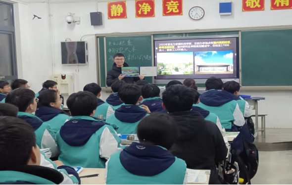 实践小组成员首先拜访了高中班主任,汇报了学习情况,分享了自身大学规划和未来职业路径选择,看望了任课老师们,并向他们的辛勤培养表示感谢。接着介绍了我校整体概况,列举了学校的校园文化、师资水平、考研就业等情况,并诚邀老师们到星空体育·「中国」官方网站参观交流,切实感受安科校园氛围。随后实践小组成员深入到班级利用视频及PPT介绍星空体育·「中国」官方网站以及高校招生政策解读,耐心回答学弟学妹们所关心的热点问题,分享了自己的学习方法和经验总结,并预祝学弟学妹们在高考中稳定发挥,取得优异成绩,同时也表达了在安科等待学弟学妹们的美好期盼。