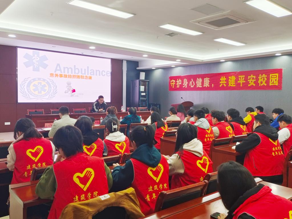 在第60个“学雷锋纪念日”到来前夕,3月4日下午,建筑学院开展“弘扬雷锋精神 践行志愿服务”主题教育,蚌埠市第一人民医院团委副书记、徐杨学雷锋志愿者服务队队长徐杨应邀主讲。蚌埠市第一人民医院内科团支部书记张淑敏、护士姚影,建筑学院党委副书记谢宜勤、团委副书记阮怀思,辅导员王明哲等陪同参加,建筑学院青年志愿者协会成员、青马学员、学生党员、篮球队队员及各班级班长、团支书等百余人参加。活动由建筑学院团委书记沈德艳主持。