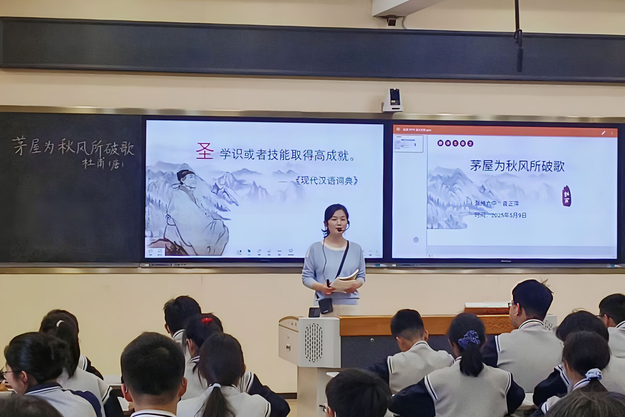 指导老师带队,组织学生观摩一线教师公开课、深入第二课堂参与学生实践活动、与一线教师交流分享见习心得。滁州市第六中学袁正萍老师以《茅屋为秋风所破歌》、滁州市东坡中学崔金苗老师以《紫藤萝瀑布》开展示范性教学,2022级132位同学深入到中学语文课堂,细致观察一线教师的授课技巧与班级管理策略。课堂上,授课教师以任务为驱动,通过情境创设、互动问答等多元形式,激发学生课堂主动性。立足新课标核心素养,抓住课堂的核心环节,巧妙突破重点字词、文章手法等重难点,通过拓展延伸示范,提升学生的语言感知和审美能力。从理论与实践双维度,为见习的同学们筑牢教师职业的实践理念,助力其成长为德才兼备的新时代教育工作者。