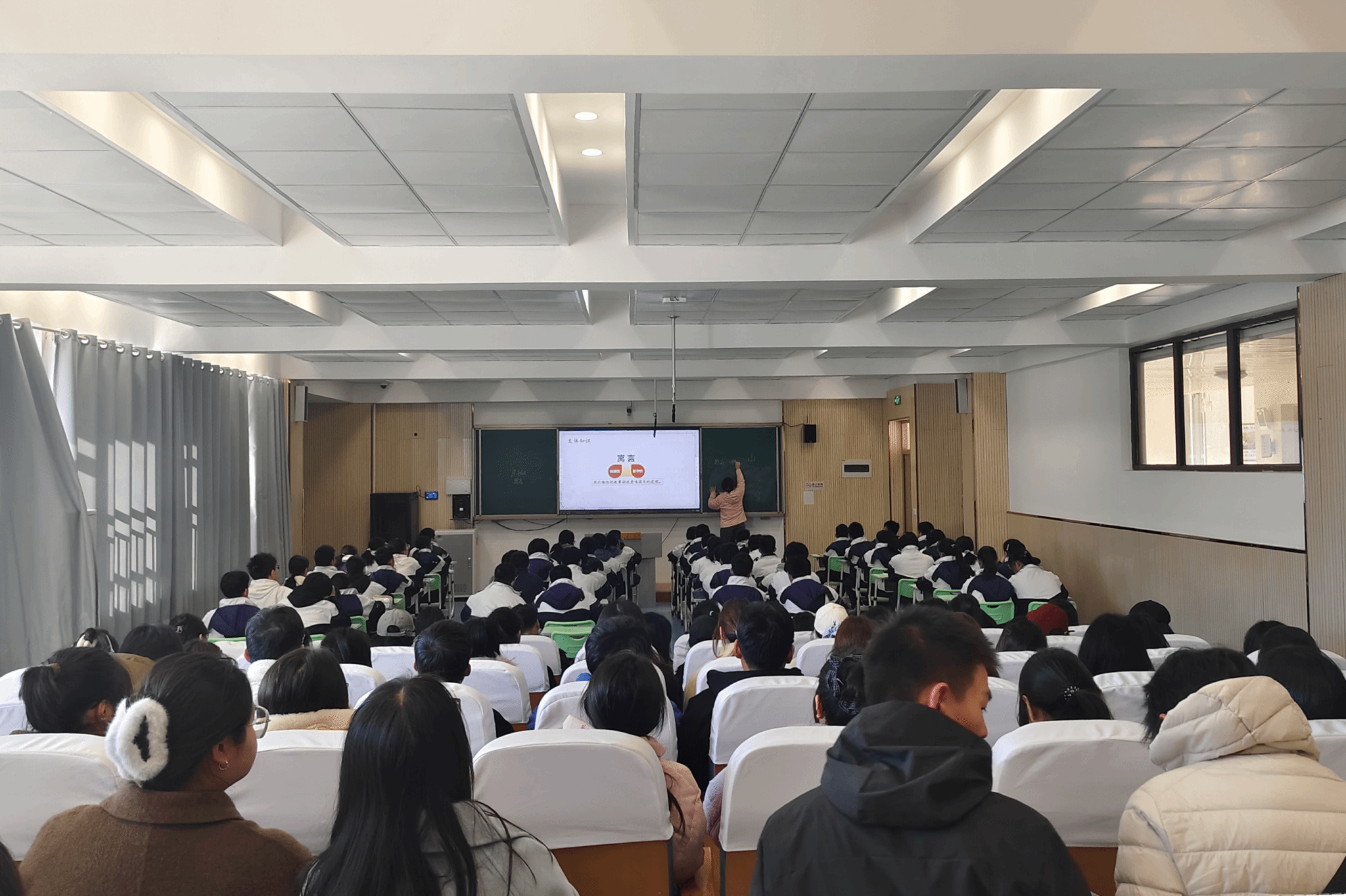 11月19日,2023级汉语言文学专业231班、232班学生走进滁州市第五中学,观摩了朱纪梅老师执教的《愚公移山》示范课。朱老师从文意梳理、情节分析入手,引导学生深入把握愚公形象,并结合现实探讨“移山精神”的当代意义。课堂逻辑严密、层层推进,使同学们真切感受到“以学生为主体”的教学理念在实际课堂中的落实,也对课堂管理、学情应对等教学核心能力有了更清晰的认识。