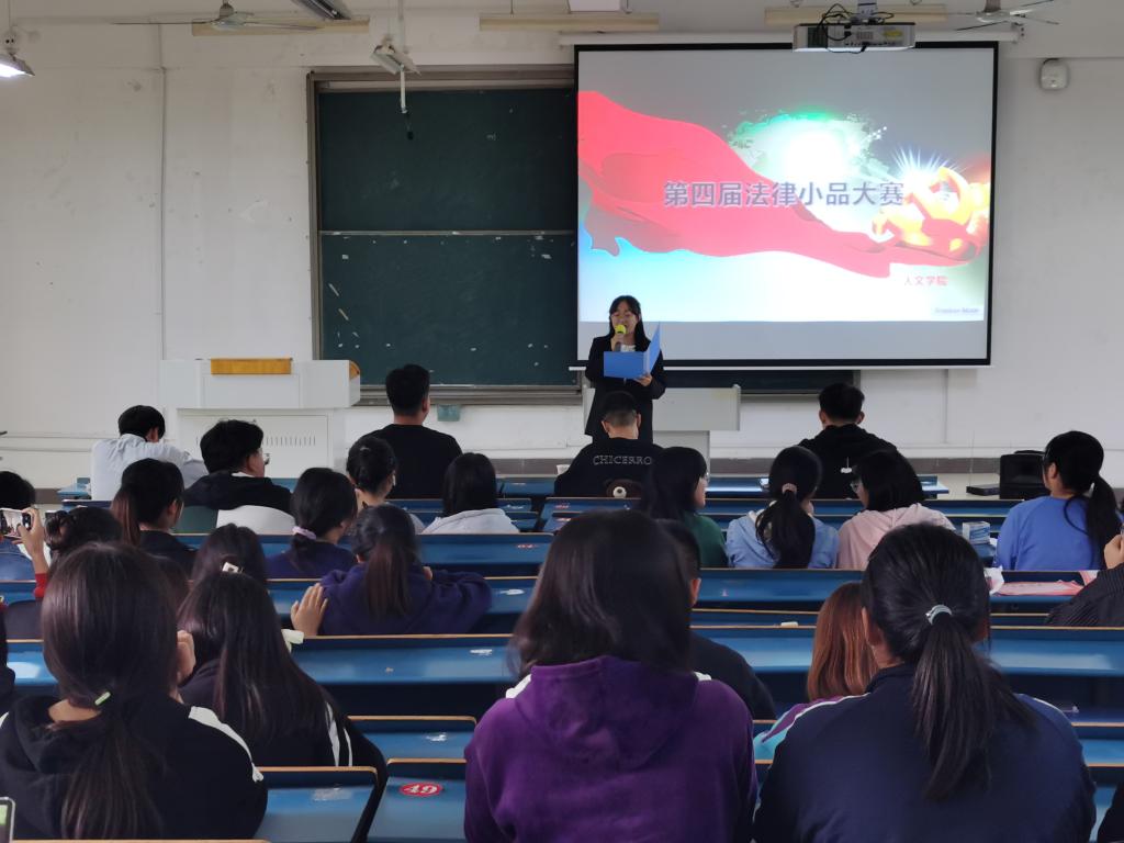 为反映法律文明建设,展现法律人的独特魅力,增强学生自我展示能力及沟通、合作、团队意识,11月3日下午,人文学院在新知楼B座203教室举行第四届法律小品大赛。比赛邀请到人文学院学生会主席杨祉龙,校新媒体中心图片社社长刘向前,c幻魔术协会会长陈龙,校爱心社社长汪新担任评委。比赛由李婉玉主持。