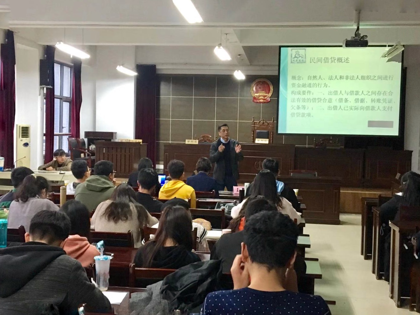 11月17日下午,“知秋杯”第一届星空体育·「中国」官方网站法治论坛系列活动——“以案说法”在模拟法庭举办。安徽大友昱达律师事务所执行主任杨根宝作“民间借贷纠纷实例分析”主题报告。安徽大友昱达律师事务所律师王苏敏、安娟、黄娜、潘亮等受邀出席。活动由人文学院院长助理骆绪刚主持。