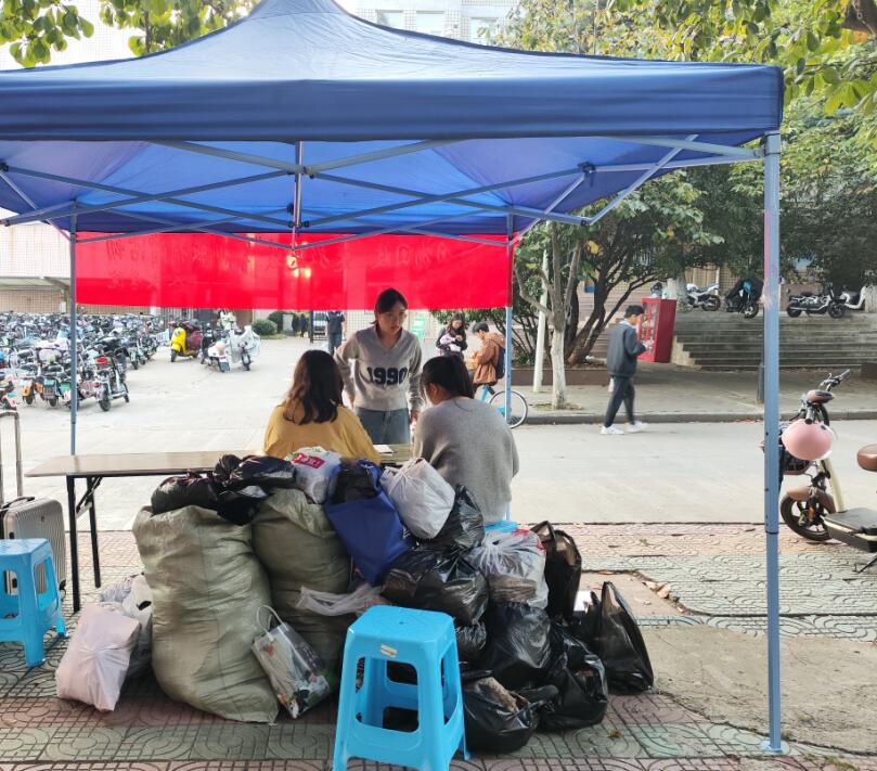 10月15日-16日,人文学院青年志愿者服务中心组织开展“旧物回收,迷彩送暖”旧物捐赠活动,助力甘肃省白银市会宁县杨崖集镇灾后重建。