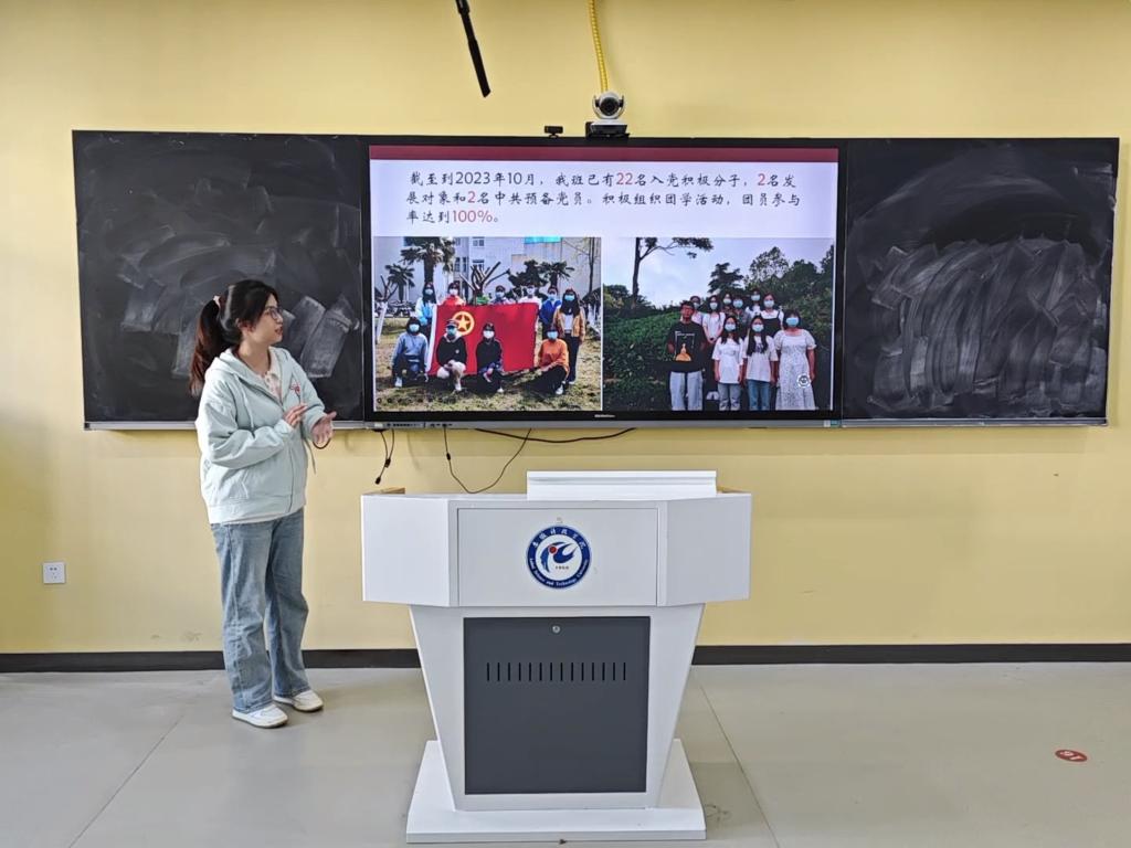 答辩过程中,各班代表依次上台展示,通过PPT演示介绍班级概况、班级工作理念和班级文化建设等情况,同时列举班级集体和班级成员荣获的各类荣誉奖项;答辩评委认真倾听大家的介绍,并在仔细审阅答辩班级申报材料的基础上,综合班级代表现场答辩表现情况进行严谨评分。