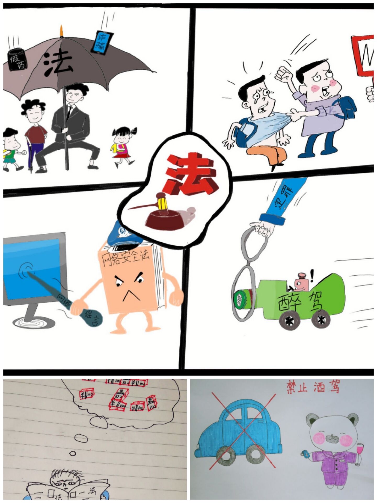 主题活动分为法律文化知识征文比赛和法制漫画比赛两部分,由参赛人员将其作品进行投稿,工作人员将作品上传至易班进行线上投票。活动期间,学生们皆踊跃参加,征文比赛中,选手们皆妙笔生花,以真实的笔触抒发出自己对法律最崇高的敬意,从他们的作品中,可以看出法律对国家、对社会、对个人的重要的作用;漫画比赛中,选手们以精湛的画技,充满寓意的构图,意味深长的配字对自己心中的法律进行了刻画,作品大多以宣传遵纪守法的社会公德为内容。学生们对此次活动十分关注,也积极进行了投票,评选出自己心仪的作品,最终,征文中,法学192贺成杰获得一等奖,法学182高冰瑾、法学181邓慧玲获得二等奖,汉语言文学192张璇、法学191方翠翠、法学182王珊获得三等奖。漫画比赛中,法学182储珊珊获得一等奖,汉语言文学182杨文琦、法学182陈娜娜获得二等奖,法学192俞红、汉语言文学192张良昊旻、汉语言文学191蒋青青获得三等奖。