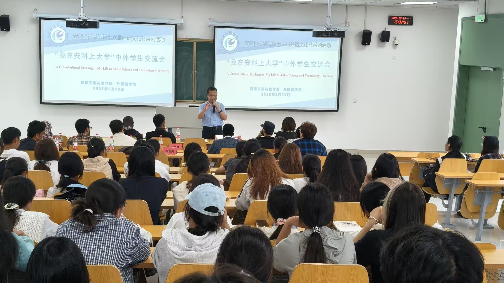 9月29日下午,星空体育·「中国」官方网站第十六届外语文化节“我在安科上大学”中外学生交流会在滁州校区学术报告厅举行。国际交流与合作处处长何世潮、外国语学院党委书记蔡为青、副书记张海亮出席,150余名中外学子参与交流。