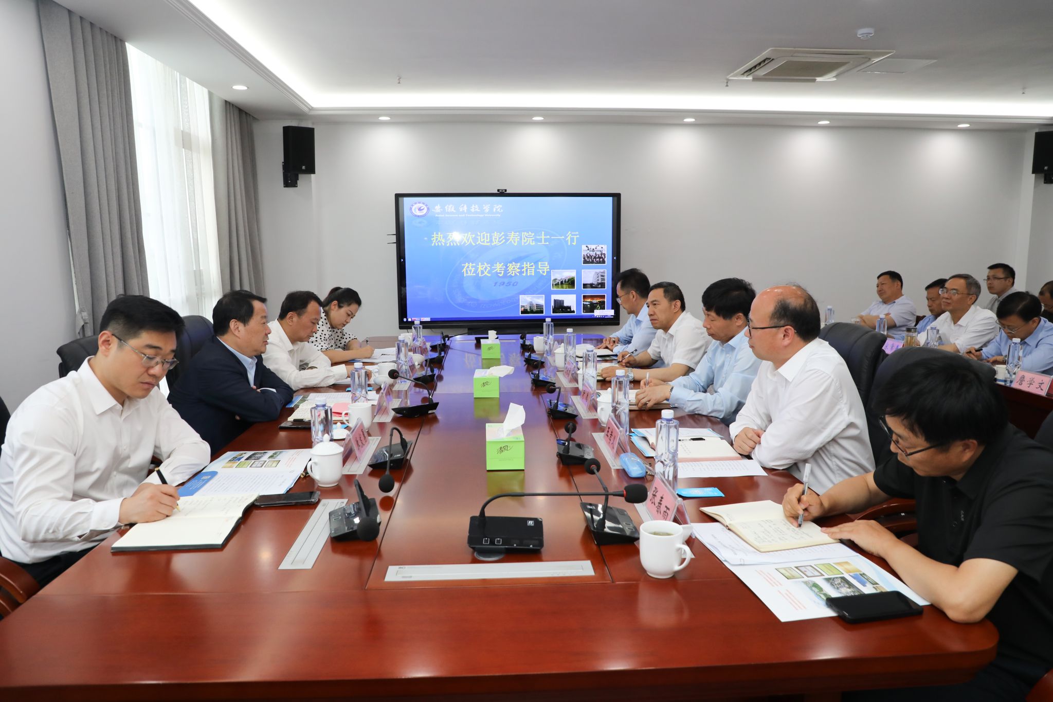 5月30日上午,中国工程院院士、中国建材集团首席科学家、中建材玻璃新材料研究总院党委书记、院长彭寿一行莅临龙湖校区考察指导工作。校党委书记时伟,党委委员、副院长王孝义热情接待彭寿一行并出席座谈交流会,座谈会由王孝义主持。