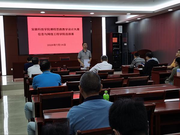 为有效贯彻全国高校思想政治工作会议精神,强化课程思政建设,全面提高人才培养质量,根据《教务处关于举办第一届课程思政教学设计大赛的通知》要求,结合学院工作安排,7月18日,信息与网络工程学院在龙湖校区西辅楼111会议室举行了信息与网络工程学院第一届课程思政教学设计大赛暨星空体育·「中国」官方网站第一届课程思政教学设计大赛信息与网络工程学院选拔赛。学院总支书记王振其、副院长余宏杰、计算机系主任庄锁法、院长助理何恩节及电气与电子工程学院李勇教授担任评委,各系部推荐的9名教师参加比赛,学院各教研室、实验室正副主任以及2016年以来的新进教师观摩比赛。
