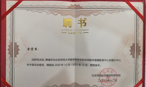 成立仪式上,北京师范大学数学科学学院博士生导师黄海洋教授代表京师数学建模教育中心为安徽分中心授牌、为分中心学术委员会委员颁发聘书、为数学建模实践基地授牌。随后由黄海洋教授作了数学建模教育的大会专题学术报告。参会期间,余宏杰、仇海全与兄弟院校数学建模负责人进行了深入交流,介绍了我校在数学建模教学、竞赛组织与培训等方面的做法和经验,表达了与兄弟院校在数学建模竞赛方面开展深入合作的愿望。(特约通讯员:宋雪亚 审核:余宏杰)