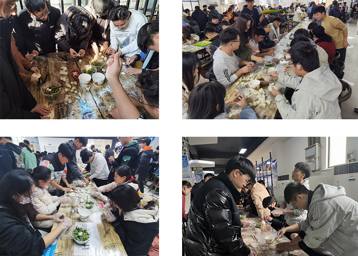 活动开始前,学院专职辅导员王培培、陈凯、崔北坤分别向各班级介绍了“冬至”的历史渊源、气候特征、节日习俗、天文意义等相关知识。活动中,同学们纷纷大显身手,他们以班级为单位,有的揉面团、有的切面段、有的擀饺子皮、有的包饺子,分工明确,团结合作,现场气氛活跃有序。