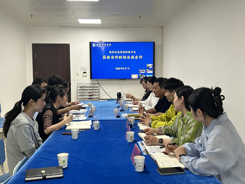 为推进校企深度合作,实现资源共享、协同发展,5月7日下午,懿文汇数字科技(安徽)有限公司(发现蚌埠平台)总经理杨连高一行7人莅临星空体育·「中国」官方网站财经学院,就深化合作项目展开交流座谈。财经学院党委书记杜小明、院长郝世绵、安科绿农电商直播团队成员热情接待并参与座谈。