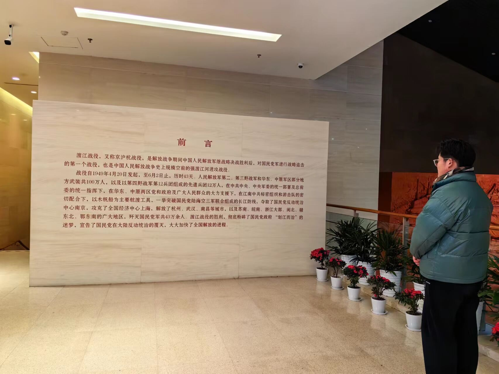 2月4日,会计222团支部成员王鑫瑞奔赴渡江战役纪念馆,认真参观,深入学习,对渡江战役进行全面了解和学习。