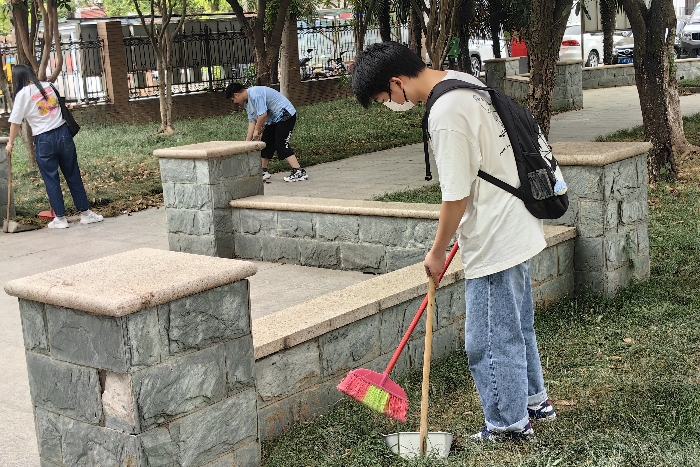 活动中,大家分配好三部分工作任务,各司其职,分别拖地、擦窗户、打扫楼梯。卫生打扫完后,同学们陪伴老人聊天、谈心。最后,同学们和爷爷奶奶以及养老院工作人员一同拍照留念。