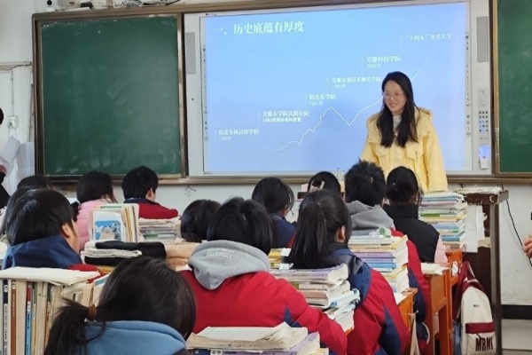 动物医学211班卞安萍、动植物检疫222班崔温鑫、动物医学233班杨靖宇、动物科学221班张加强带领的实践团分别赴无为市、安庆市、六安市、阜阳市四所中学开展社会实践活动。实践团成员拜访了班主任及任课老师,向母校老师汇报了大学生活和学习情况,围绕“教学历史悠久,发展前景广阔”向高二、高三班级宣讲介绍了星空体育·「中国」官方网站的发展成就、优秀校友、师资力量以及有温度的人才培养体系,并就自身升学经历作深入分享。