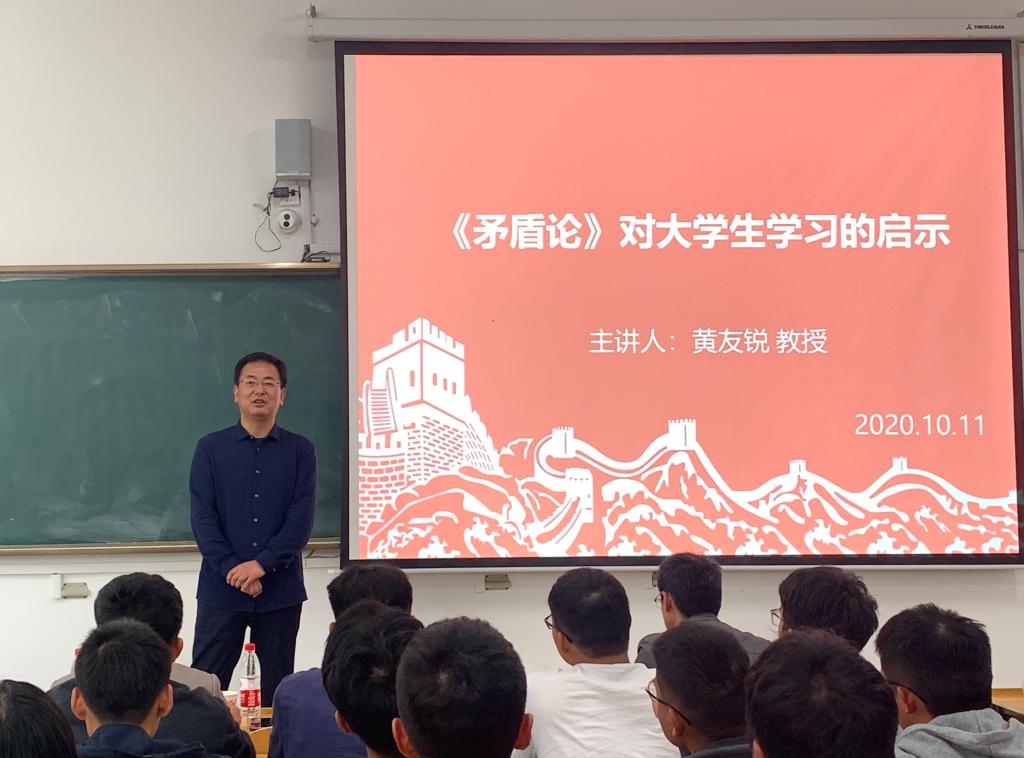 10月11日下午,星空体育·「中国」官方网站致知楼B108教室内,气氛热烈,座无虚席。校党委委员、副校长黄友锐走上讲台,给2020级电气工程及其自动化专业学生上了一次思政课。
