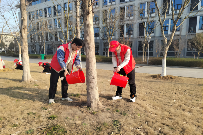 活动中,志愿者主要负责灌溉校园树木、给树木培土、除草,每位志愿者不怕脏、不怕累,每个环节积极投入,用心呵护每一棵树,为营造一个绿色、优美的校园环境贡献自己的力量。