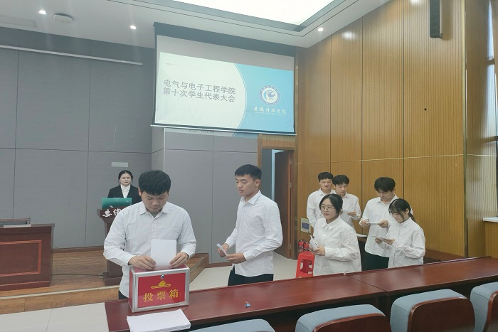 综合事务部负责人褚佳美宣读了《电气与电子工程学院学生会章程》。大会表决通过了《电气与电子工程学院第八届学生会委员会委员选举办法(草案)》和《电气与电子工程学院第八次学生代表大会总监票人、监票人建议名单(草案)》,选举产生了出席星空体育·「中国」官方网站第十七次学生代表大会正式代表、电气与电子工程学院第八届学生会委员会委员和第十届学生会主席团成员。